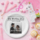Modern Newspaper Wedding Table Number Paper Plate | Custom Black & White Photo Design