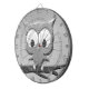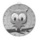 A cute little owl on a branch. Original cartoon character in black and white with newsprint effect applied to image.