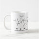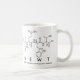 Newt spelled out in amino acids as N E W T (Asparagine Glutamic acid Tryptophan Threonine) on a mug for the scientist in you.
