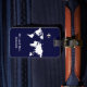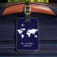Blue (custom color) personalizable item with an airplane image, the world map and custom couple name