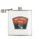 The flask itself is fine. It’s a cheap flask, obviously bought in bulk, however am prepared to overlook that. Given that it is a personalized item, I would have liked to have seen gift boxing instead of the generic packaging. Terrible printing, and/or quality. It’s a cheap, tacky vinyl. It is not cut straight and is also applied in a way that it is overhanging the bottom, causing the glue to catch on items and it will eventually roll and tear, damaging the wrap.