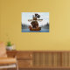 This design is based on an actual event that took place at Niagara Falls in 1827. As a publicity stunt, a few local hotel owners bought an old schooner, decorated it to look like a pirate ship, then sent two bears, two raccoons, a goose, a dog, and a buffalo over the falls in it. This seriously happened! Madness.