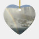 Photo of the New York side of Niagara Falls with a rainbow on a heart shaped ornament,