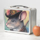 This is a standard metal lunchbox that appears to work just fine. We designed this box ourselves with an uploaded photo and custom text on the front and back. It looks absolutely beautiful except the front of the lunchbox is not centered like it shows in the photo. The print borders don't align with the inset flat part of the box where the preview photo online showed it perfectly centered in there. The back looks nice and centered though.