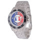 Has heft and feel of expensive stainless steel quartz watches. Good band with safety catch. I removed links, which is easy because engraved arrows show direction to push the linking pins. As always by this seller, the image (a railroad logo) is a perfect reproduction of my emailed image, and is precisely spaced and aligned.