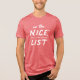 On the nice list? This funny Christmas shirt is perfect for those who may or may not be on Santa's nice list. Sometimes "nice" stands for "now I can explain" - and it's perfect for ornery but still good kids or adults! This cute and clever t-shirt for naughty grownups with a good excuse is sure to bring a smile to the faces of friends and family. Makes a great white elephant gift!