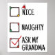 Nice Naughty Ask My Grandma Funny Christmas Kids M Poster