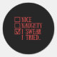 Nice Naughty I Swear I Tried Funny Xmas Classic Round Sticker
