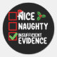 Nice Naughty Insufficient Evidence Christmas List Classic Round Sticker