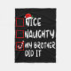 Nice Naughty My Brother Did It List Xmas Santa Cla Fleece Blanket