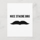 Hilarious phrase, “Nice Stache Bro,” written in simple, slim, black-block font above a large black hardcore 1970’s police officer moustache. This design is the perfect blend of the infamous, “Cool story bro,” & everyone’s favourite homegrown facial decoration.