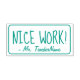 This inspiring rubber stamp design features the inspiring message "NICE WORK!" and a custom teacher's or educator's name. It could be used by a teacher, educator, or tutor when grading student work, to acknowledge that a student has done an exceptional job.