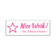 This fun rubber stamp design features the inspirational message "Nice Work!" and a custom teacher's name. It also features a decorative star shape icon. It could be used by a school teacher, educator, or tutor when marking assignments, to indicate that the student has done a great job.