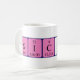 Nichola spelled out as N I C H O La (Nitrogen Iodine Carbon Hydrogen Oxygen Lanthanum) on a mug for the scientist in you.