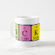 Nicklas spelled out as Ni C K La S (Nickel Carbon Potassium Lanthanum Sulfur) on a mug for the scientist in you.