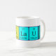 Nicklaus spelled out as Ni C K La U S (Nickel Carbon Potassium Lanthanum Uranium Sulfur) on a mug for the scientist in you.