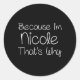 Nicole Personalised Name Classic Round Sticker