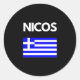 Nicos Greek Name with Greek Flag Design Classic Round Sticker