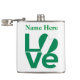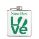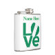 Personalised flask features the word LOVE in green letters with a heart-shaped Nigerian flag for the O. Add a name, in green letters, above the love.Lots of fun for Nigerians and anyone who loves and honours the culture and heritage of that country. Looks lovely on beverage containers, whether you use them for alcoholic or non-alcoholic refreshments. Fun to take to your family reunion, travel group, or club. Lovely Valentine's Day gift, too.