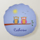 Night and day owls custom name two-sided round cushion