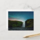 This photo features beautiful Skógafoss at night with stars and the northern lights.