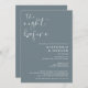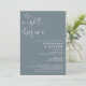 The night before! Let's celebrate our favourite couple's rehearsal night before the big day with this elegant fun, playful and simple rehearsal dinner invitation featuring fun script in white and dusty blue.