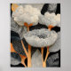 This creampetaled floral trio with patterned leaves presents a stylized botanical illustration featuring three creamtoned flowers with fine vertical line textures and warm orange centers. Surrounding leaves in blue, white, and orange showcase intricate dot and line patterns, all set against a deep black background that amplifies the artwork’s contrast and detail. Designed in a versatile 4:5 ratio, this highresolution digital download brings luminous artistry and handcrafted charm to any space, perfect for framing, gifting, or enhancing your home décor with vibrant garden elegance. #DigitalDownload #modernfloral #patternillustration #graphicdesignart
