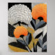 This scalloped floral trio with textured leaves offers a detailed illustration featuring three round petaled blooms in soft whites and warm oranges, each enriched with fine line textures and bold black centers. Surrounding leaves in blue, yellow, and white display intricate linear and dotted patterns, all set against a dense starlike dotted black background. Designed in a versatile 4:5 ratio, this highresolution digital download brings luminous artistry and handcrafted charm to any space, perfect for framing, gifting, or enhancing your home décor with vibrant garden elegance. #DigitalDownload #botanicalart #patternillustration #graphicdesignart