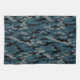 These camo kitchen towel feature a camouflage pattern in blue and black and grey.