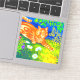 Sticker featuring Louis Wain’s animal painting Cat Stalking (1860-1939). An orange striped cat walks a green field at night. White, purple, and red flowers are in the foreground. A wonderful gift for cat lovers and English art.