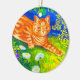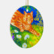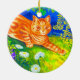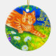 Ornament featuring Louis Wain’s animal painting Cat Stalking (1860-1939). An orange striped cat walks a green field at night. White, purple, and red flowers are in the foreground. A wonderful gift for cat lovers and English art.