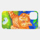iPhone Case featuring Louis Wain’s animal painting Cat Stalking (1860-1939). An orange striped cat walks a green field at night. White, purple, and red flowers are in the foreground. A wonderful gift for cat lovers and English art.