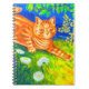 Notebook featuring Louis Wain’s animal painting Cat Stalking (1860-1939). An orange striped cat walks a green field at night. White, purple, and red flowers are in the foreground. A wonderful gift for cat lovers and English art.