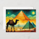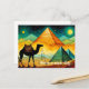 Desert camel with Egyptian pyramids postcard. Easily customise the message for your needs.