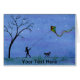 A boy and his dog stay out late flying a kite as the evening falls and stars appear in the sky in this tiny watercolor and ink winter landscape. Painted for Art-O-Mat.