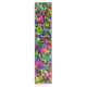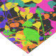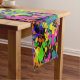This eye catching table runner features paint splatters in bright yellow, lime green, orange, teal, violet blue and hot pink. The black background really sets the colours off.