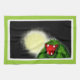 Digital pencil drawing of a big green cartoon monster with tiny horns and yellow eyes, his red mouth wide open, baring large, pointy white teeth, lurking under a glowing full moon. Original digital cartoon art by Taylor Addams.
