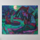 Night Moon; Accordion Player by Moonlight (1924) by Ernst Ludwig Kirchner presents a moody and atmospheric mountain landscape, illuminated by a subtle moonlit glow. The painting captures the serenity of the night, featuring figures playing music under the celestial light. The composition is chraacterised by deep jewel tones of green, teal, and magenta purple, creating a mysterious and reflective mood. Kirchner's use of low contrast colours and dynamic brushwork evokes the intimate connection between the figures, the music, and the natural surroundings, typical of his expressive and emotional approach to modernist landscapes.