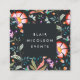 Elegant floral business cards in a unique square shape feature a background pattern of brightly colored flowers and greenery with your name or company name and title displayed in white on an inky off-black square. Add your full contact information to the reverse side. Perfect for wedding planners, event planners and other special occasion professionals.