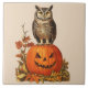 NIGHT OWL ON HALLOWEEN PUMPKIN AND AUTUMN LEAVES CERAMIC TILE
