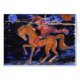 Red dakini riding across the night sky with the moon and the sun shining to symbolize that the journey is outside time and space