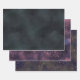 A single sheet of each wrapping paper design; Obsidian, Endless, and Purple Hues.