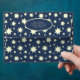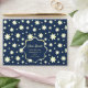 This design features a deep navy blue background beautifully adorned with glowing golden-yellow stars in various sizes. The repeating star pattern creates a dreamy, celestial effect, giving the piece a magical and elegant look. At the centre, there is a dark navy label outlined with a golden border, where personalised text can be placed, such as a name and address. The overall style feels festive, celebratory, and enchanting, making it suitable for events like birthdays, weddings, baby showers, holiday gatherings, or any occasion with a night-sky or starry theme. The glowing stars against the dark background add both charm and sophistication, making it stand out as a stylish stationery design.