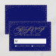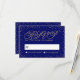 Tiny, glittery gold stars sparkle in confetti clouds around the edge of this beautiful deep navy blue response card, with a gold glitter effect script reading, "RSVP". Fancy, chic and enchanting all at once. Perfect for a night-time wedding under the stars. Original artwork by Colleen Michele. Please note, there is not a real gold glitter or gold leaf effect on the stars and script; no actual glitter, gold leaf or metallic ink will be used in this invitation.