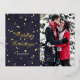 navy velvet background with gold stars imitating a night sky with elegant script happy holidays and your info below with your own photo