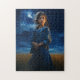 This young guardian stands beneath a starry sky, wrapped in a celestial blue dress that mirrors the heavens above. Standing in a moment of quiet contemplation under the cosmos.
