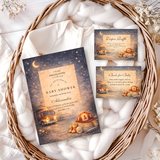 Night Sky Little Firefighter Baby Shower Invitation