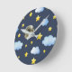 Navy blue background with a seamless pattern of golden stars, moon and clouds in a watercolor technique. Check our store for more matching items.