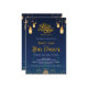Invite your guests to a beautiful evening of reflection and community with this stunning Iftar invitation. The design features a majestic navy blue mosque silhouette set against a deep night sky, adorned with glowing golden lanterns, stars, and crescent moons. This atmospheric and elegant card is perfect for Ramadan dinner parties, community Iftar events, or Eid Al-Fitr celebrations.