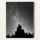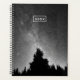This black and white photo features a night sky over the forest.